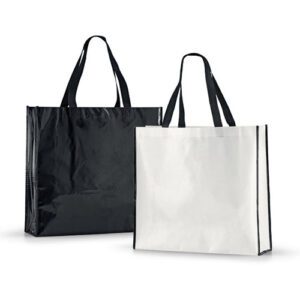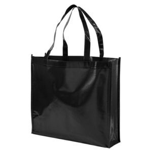Τσάντα αγοράς λαμιναρισμένη non-wooven. Διάσταση: 42Χ38Χ12εκ. Χρώματα: Μαύρο, λευκό.