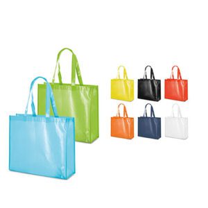 Τσάντα αγοράς, πλαστικοποιημένη. Διάσταση: 40Χ36Χ12εκ. Χρώματα: Μπλε ρουά, λευκό, πορτοκαλί, κόκκινο, μαύρο, κίτρινο, lime.