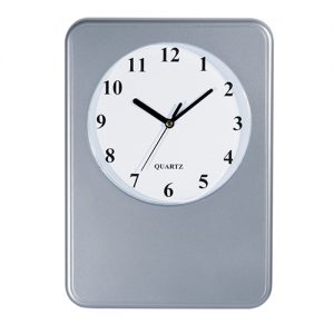 Ρολόι τοίχου σε ασημί χρώμα. Διάσταση: 21Χ30εκ.
