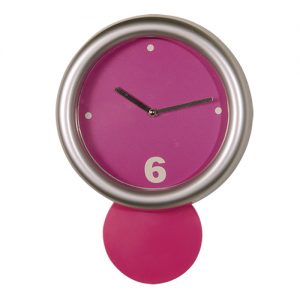 Ρολόι τοίχου εκκρεμές. Διάσταση: 18.5εκ. Χρώματα: Πράσινο, φούξια.