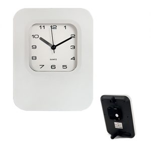 Ρολόι τοίχου και επιτραπέζιο. Διάσταση: 15Χ19.5εκ. Χρώματα: Λευκό.