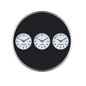 Ρολόι τοίχου με 3 ενδείξεις ώρας. Διάσταση: 35εκ. Χρώματα: Λευκό, πορτοκαλί, μαύρο.