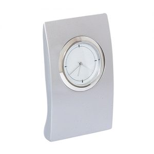 Επιτραπέζιο ρολόι μεταλλικό σε ασημί χρώμα. Διάσταση: 8.2Χ5εκ.