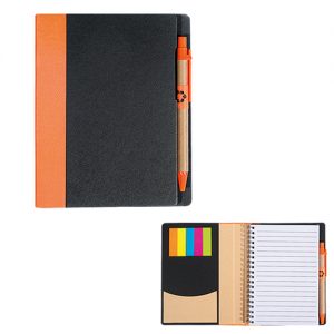 Μπλοκ σημειώσεων με post-it και στυλό. Διάσταση: 14X17.5εκ. Χρώματα: Μαύρο-πορτοκαλί.
