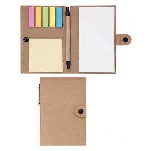 Μπλοκ σημειώσεων με κούμπωμα, με post-it και στυλό. Διάσταση: 10×15εκ.